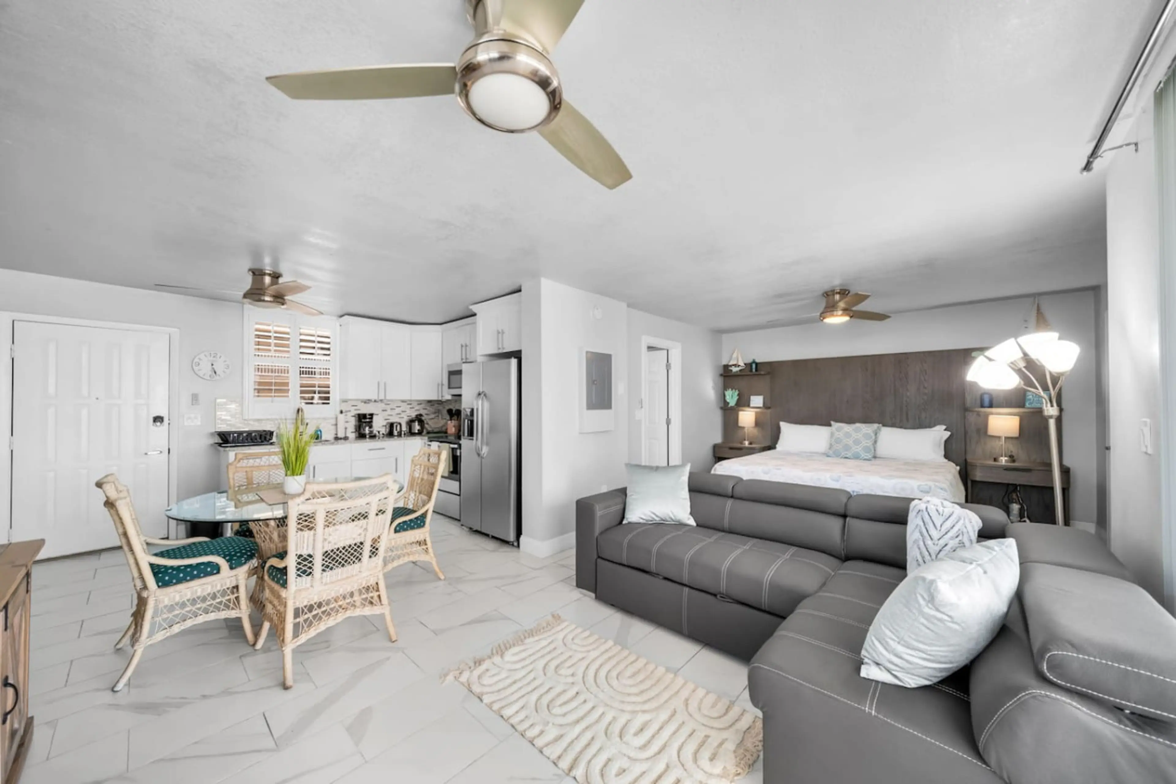 Just steps from the beach, this modern, renovated studio offers comfort and convenience. Enjoy a king bed, queen memory foam sofa bed, full kitchen with large appliances, washer/dryer, Smart TV, free Wi-Fi, and beach gear. Relax by two heated pools, play tennis, and take advantage of free parking. W...